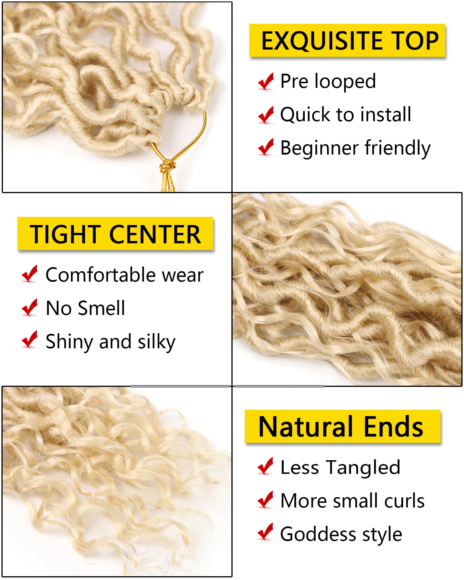 14 Inch Blonde Crochet Hair Goddess Locs 7 Packs Bohemian Locs Crochet Hair with Curly Ends Pre Looped Soft Faux Locs Crochet Hair for Black Women River Locs Crohet Braids(14 Inch,613)