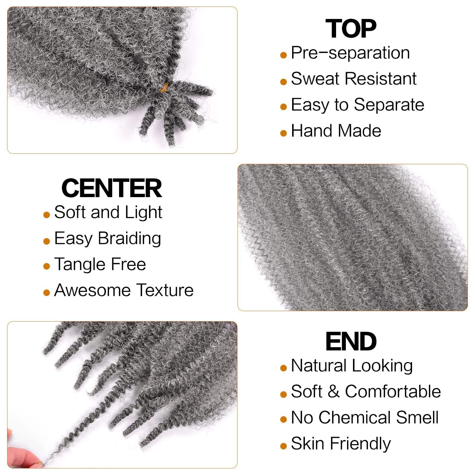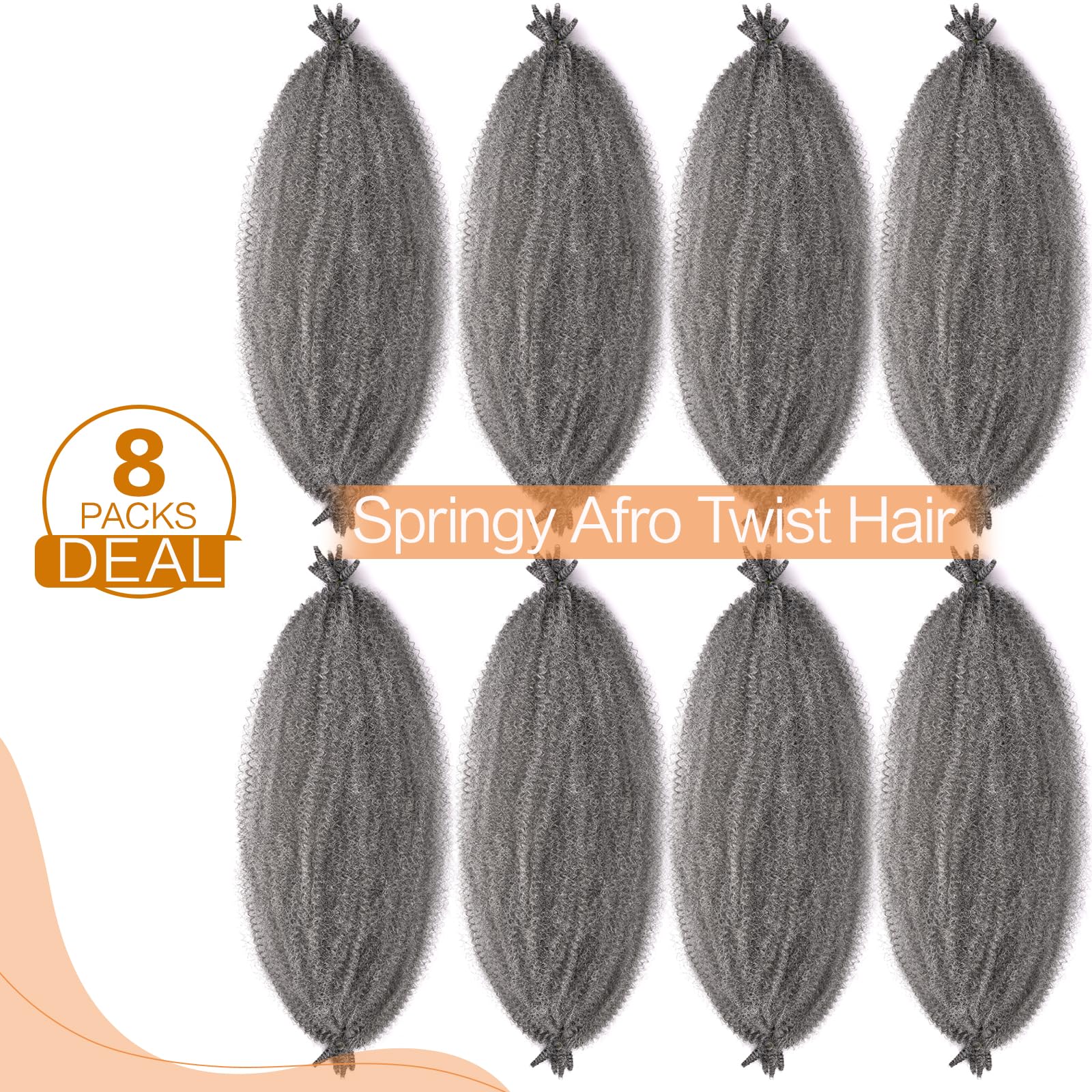 8 Packs Grey Afro Twist Hair 24 Inch Marley Twist Crochet Hair Pre Fluffed Spring Twist Hair for Distressed Faux Soft Locs (24 Inch,8Pack,Grey)