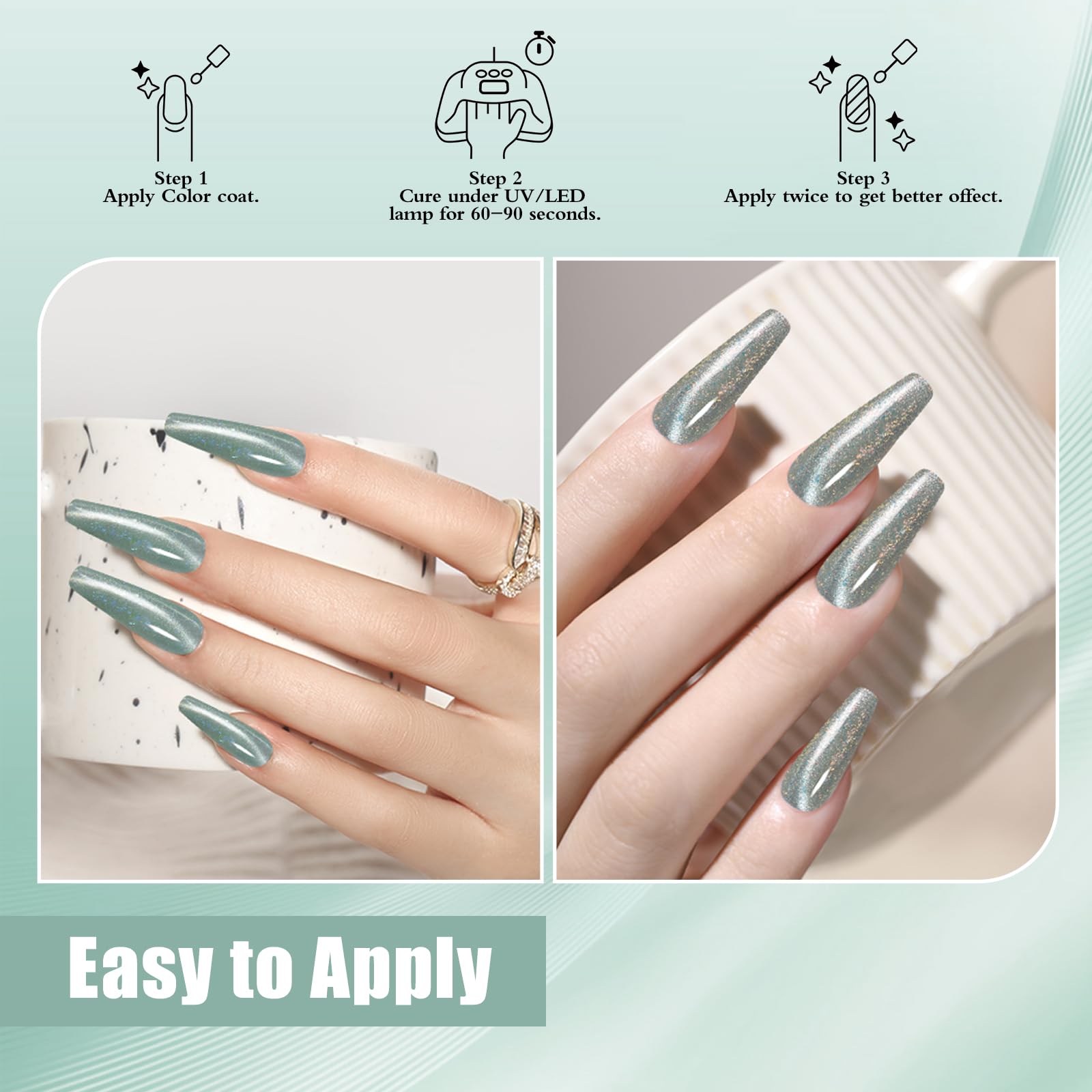 ADHERE 12ML Cat Eye Gel Polish Set, 4 Colors Holographic Glitter With Magnet, Soak Off LED Kit for Nail Art Manicure Salon DIY Gifts