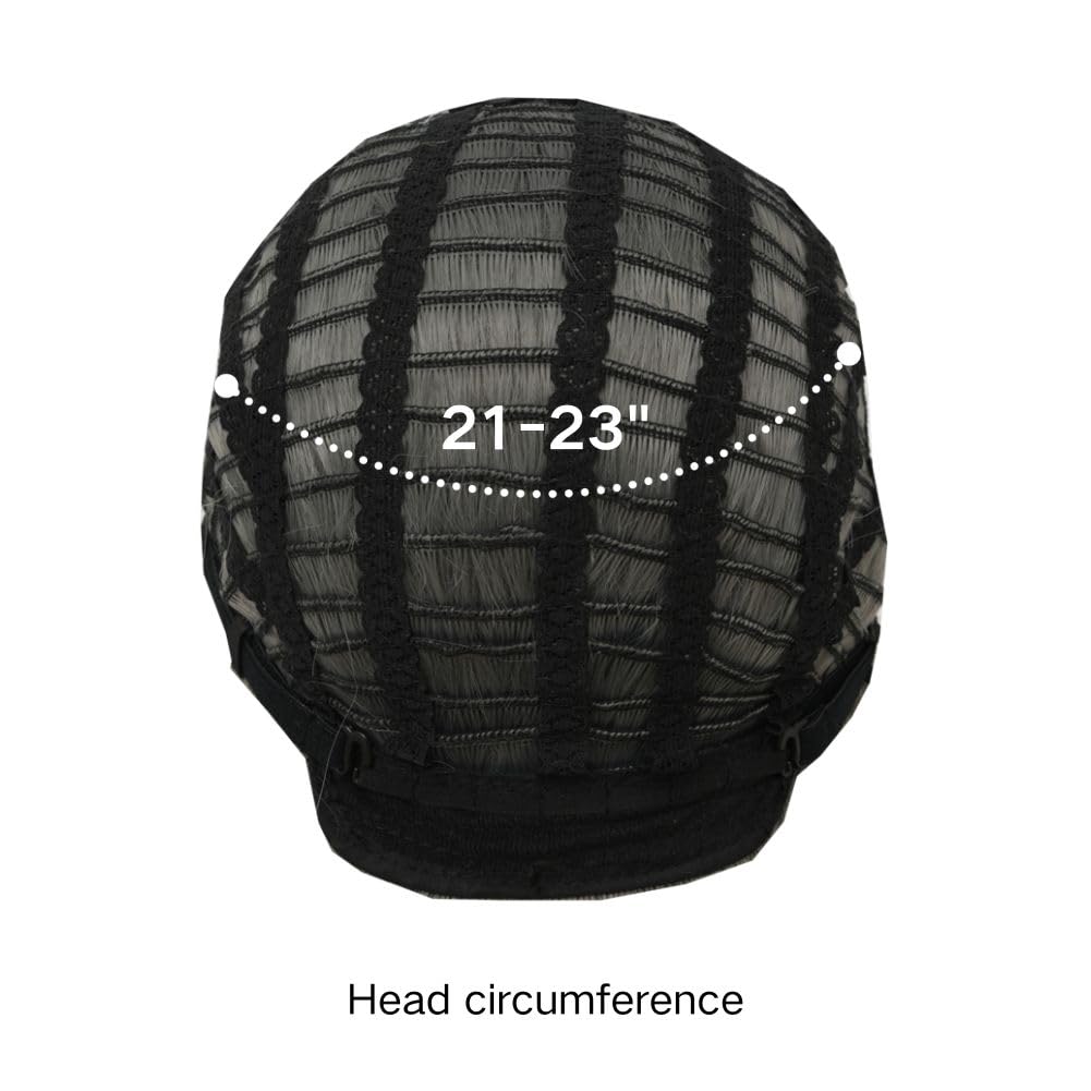 This wig with the medium wig cap size, the circumference is 21-23 inches. There are 2 adjustable straps inside which could help you fix and adjust the wig to suitable for your head.