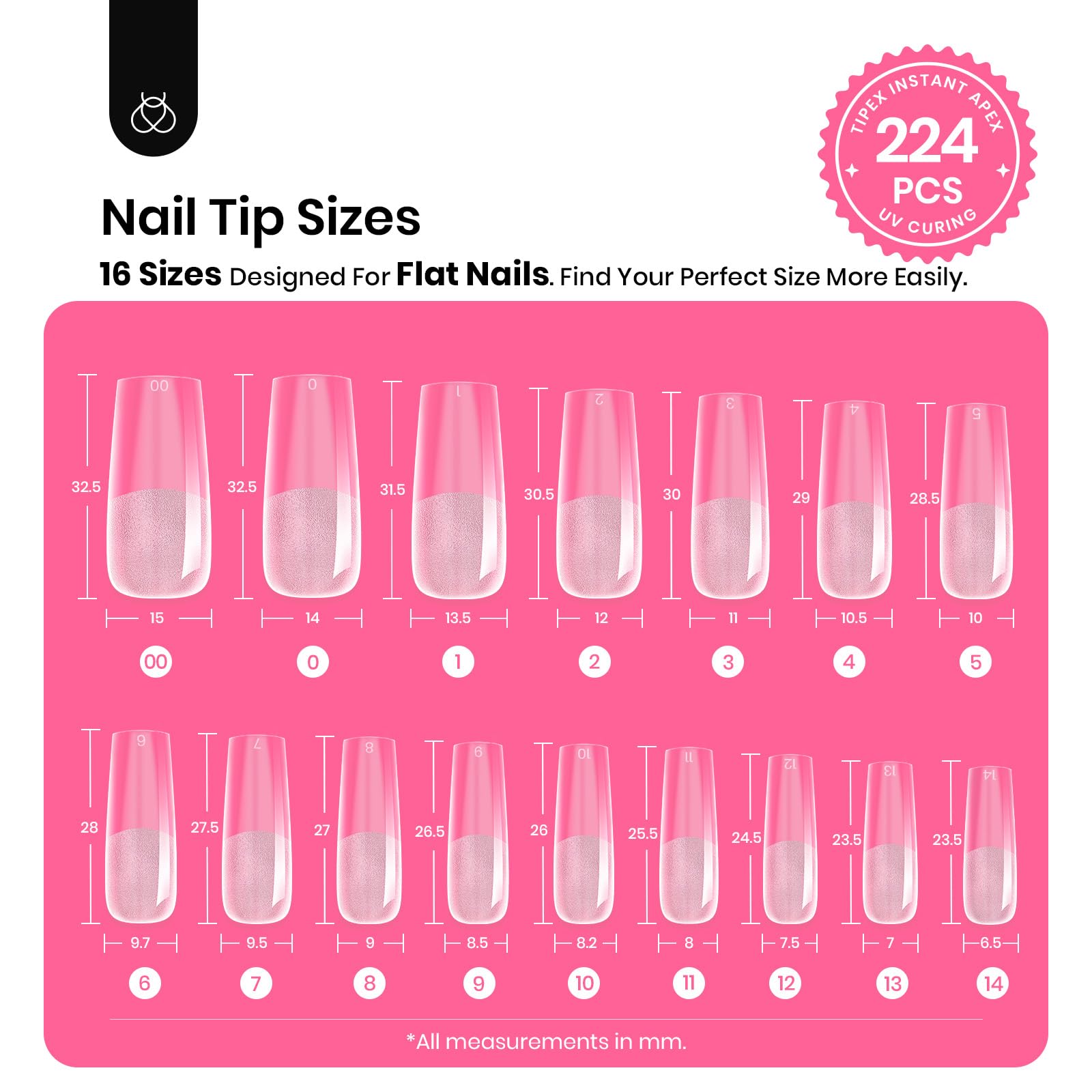 - 【224 Pcs, 16 Sizes – Pre-numbered for Easy Fit】Featuring Beetles’ new half-matte Tipex tips – designed to increase friction and adhesion for a more secure bond. With 16 size options, each pre-numbered for convenience, you’ll find the perfect fit for every nail.