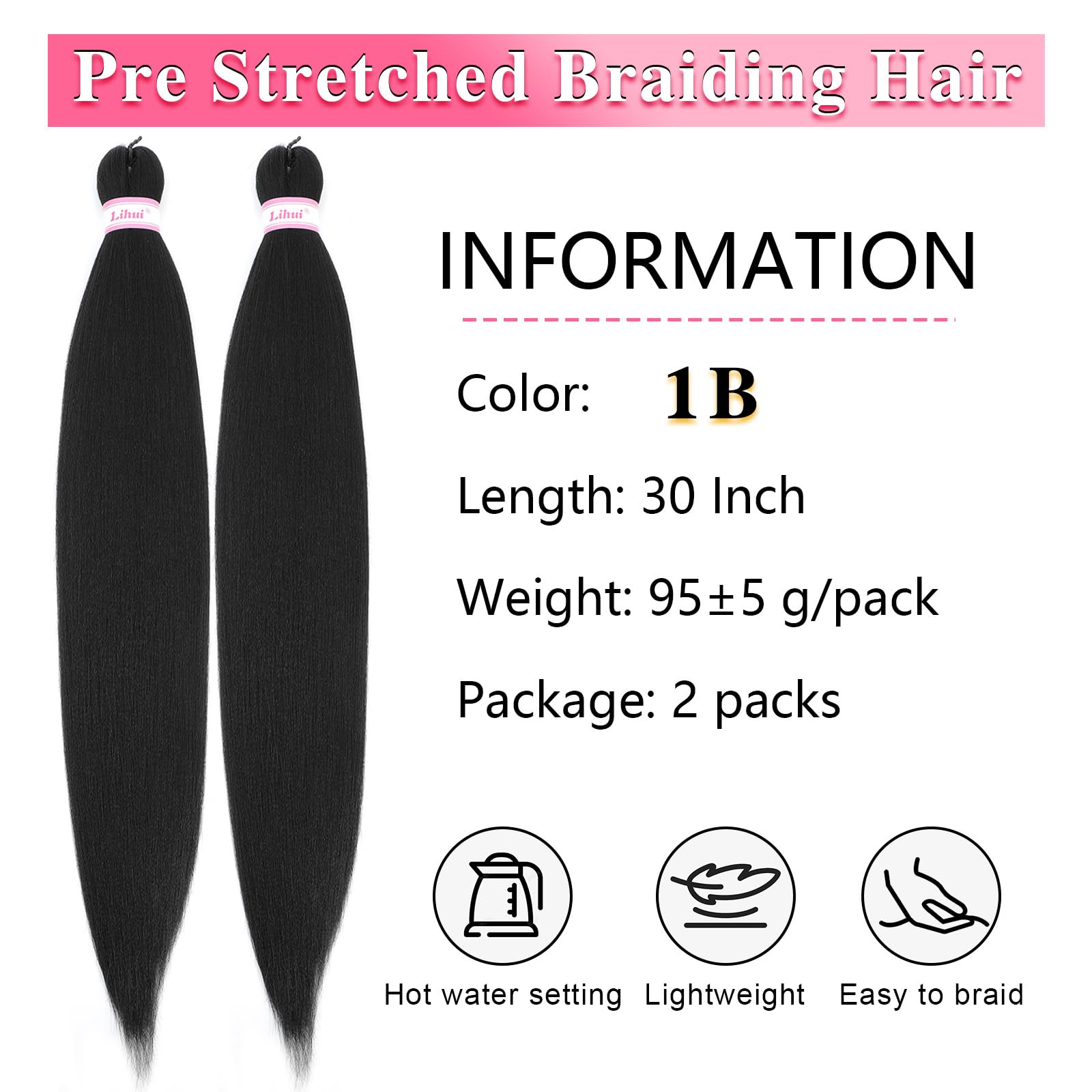 - Product Specifications - Size: 30 inch Weight: about 95g/pack Package: 2 packs. More colors and sizes braiding hair is on the way, there is always one for you, go ahead, show your talent at braiding hair!