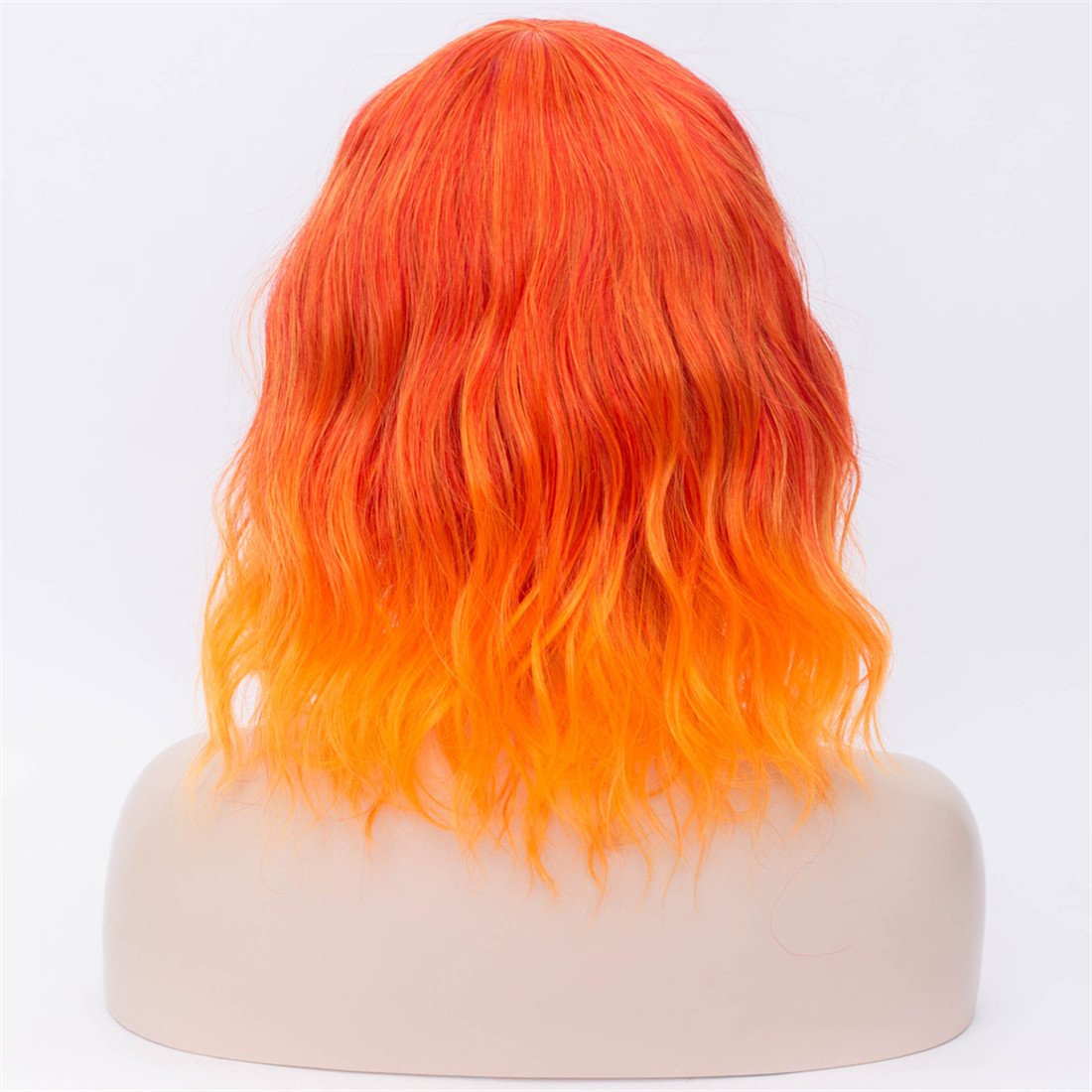 BUFASHION 14" Women Short Wavy Curly Wig Ombre Orange Bob Wig Cosplay Halloween Synthetic Wigs with Side Bang Wig(Ombre Orange)