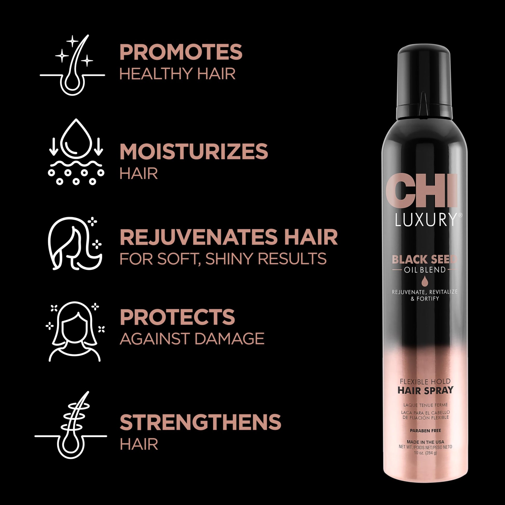 CHI Luxury Black Seed Oil Flexible Hold Hairspray, Adds Hair Texture & Volume, Natural Hold, Sulfate, Paraben & Gluten-Free, 10 Oz