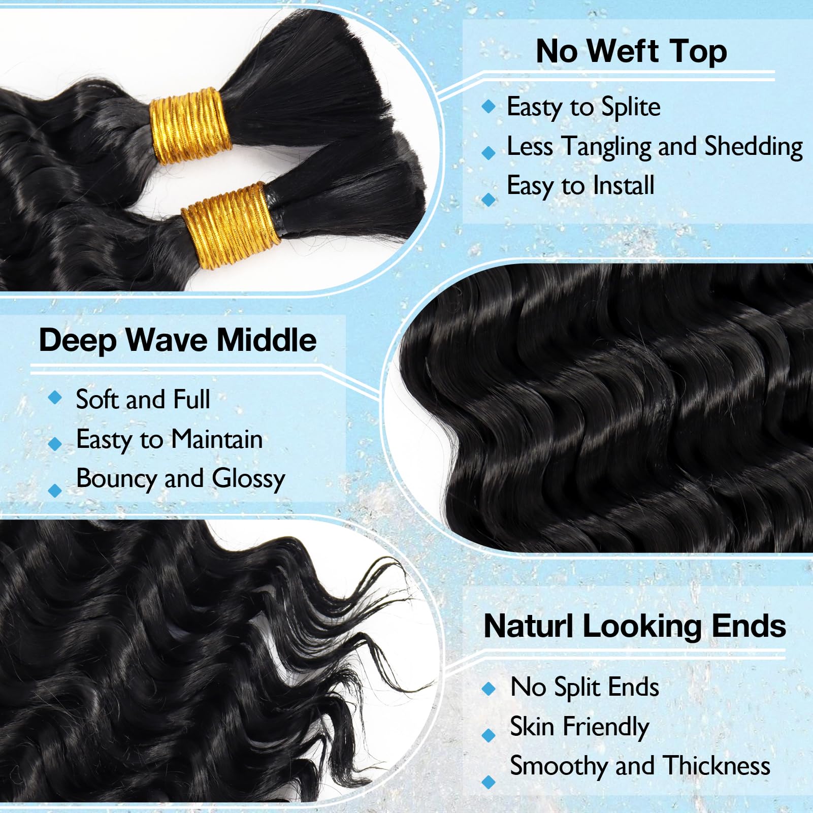 - You Will Get: Deep wave bulk braiding hair 2 bundles/pack, 100g/bundle, 200g in total. You can add more according to your needs. Stretched length: 16/18/20/22/24/26/28 inch. Color: #1B, #4, #27, #30, #350, #99j, #P4/27, #P4/30, more colors will be added.