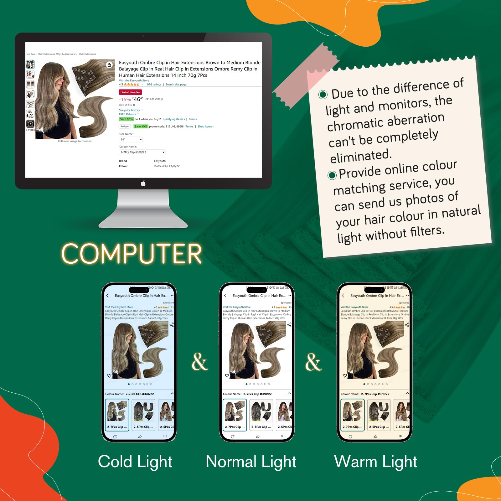 - Multiple Colors Available to Match Any Style-Our clip in extensions have black, brown, blonde, balayage, highlight, and ombre. If you're not sure what color to choose, give us a photo of your hair in natural light and we'll help you match it