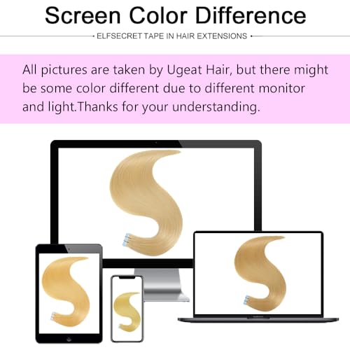 ELFSECRET 100% human hair Tape In Hair Extensions Invisible PU Seamless Skin Weft Tape in Real Human Hair Silky Straight Hair Extensions Soft Thick To End 40g/pack 20pcs (16 Inch, #613 Bleach Blonde)