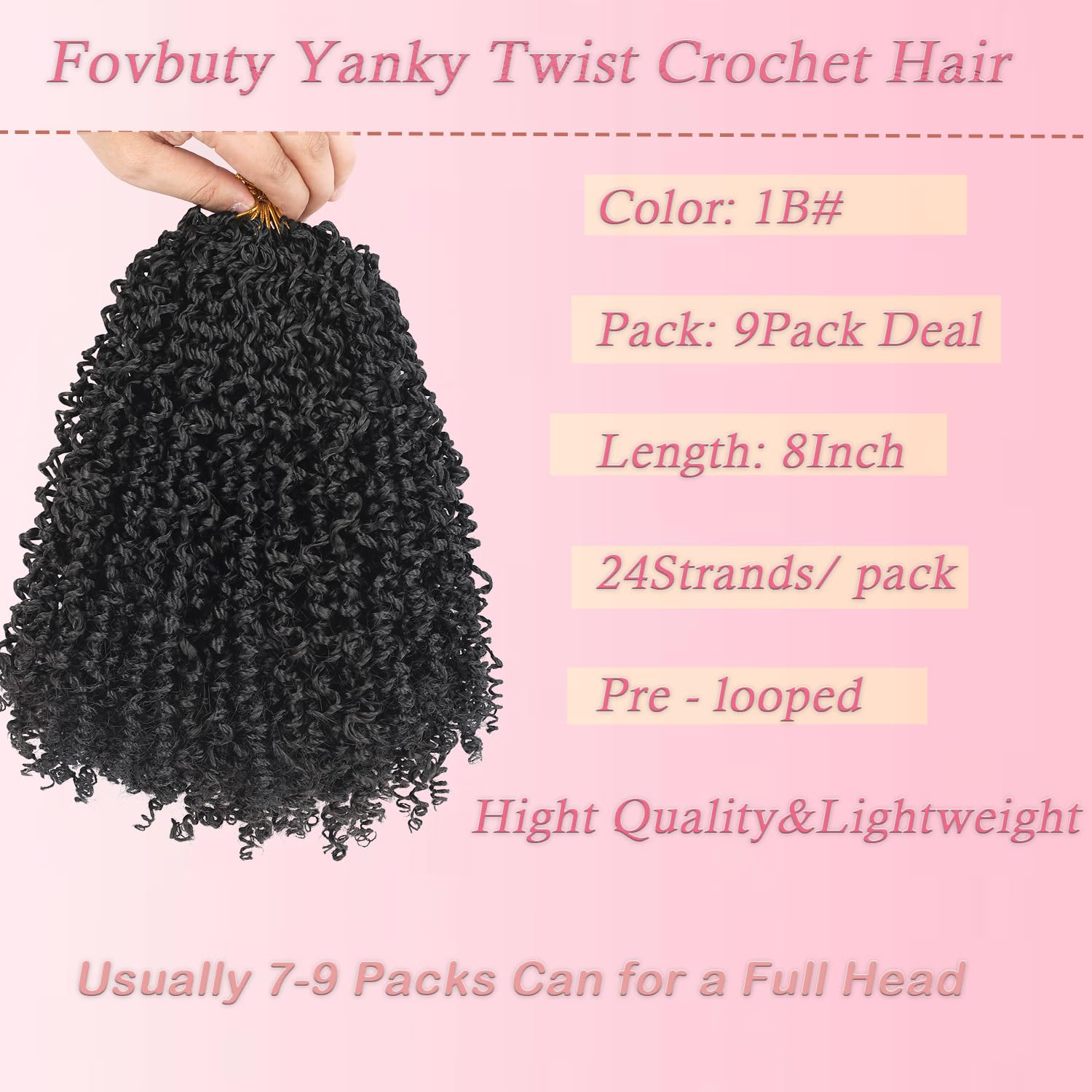 Fovbuty Yanky Twist Crochet Braids Hair 8 Inch 9 Bundles/Lot Natural Black Pre-Twisted Passion Twist With Curly Ends Small Crochet Hair for Senegalese Braids 1B#/9pack