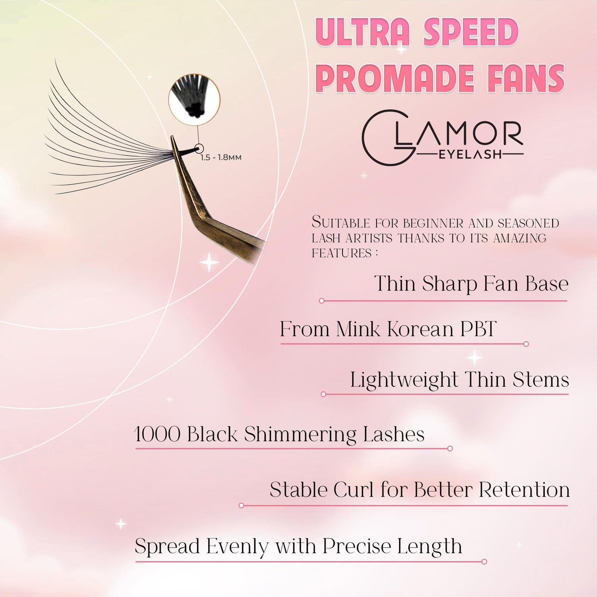 - β¨ FLUFFY & FEATHERY GLAMOREYELASH: Our Promades Fans Lash Extension are the perfect combination of the soft, fluffy, lightweight nature and shiny black color of mink lashes which create a glossy and natural look when compared to other readymade lash fans.
