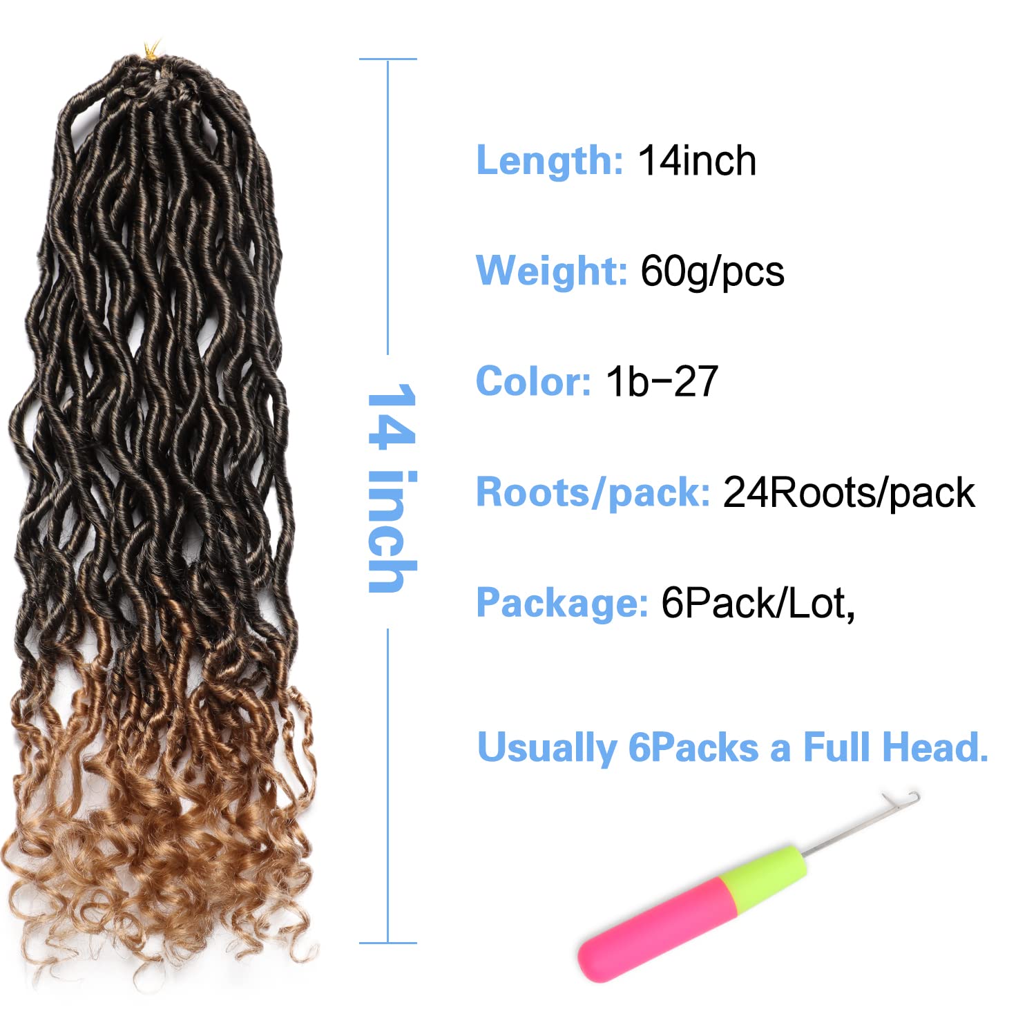 - 3.【Packing】 Faux Locks Crochet Hair 14 inch,6packs/lot, 24 Strands/Pack, 144 Strands In Total,enough for a full head, Weight: 60g, Color:1B, 1B/27, 1B/30, 1B/Grey, Protective Style, Cute Lasting Curls.