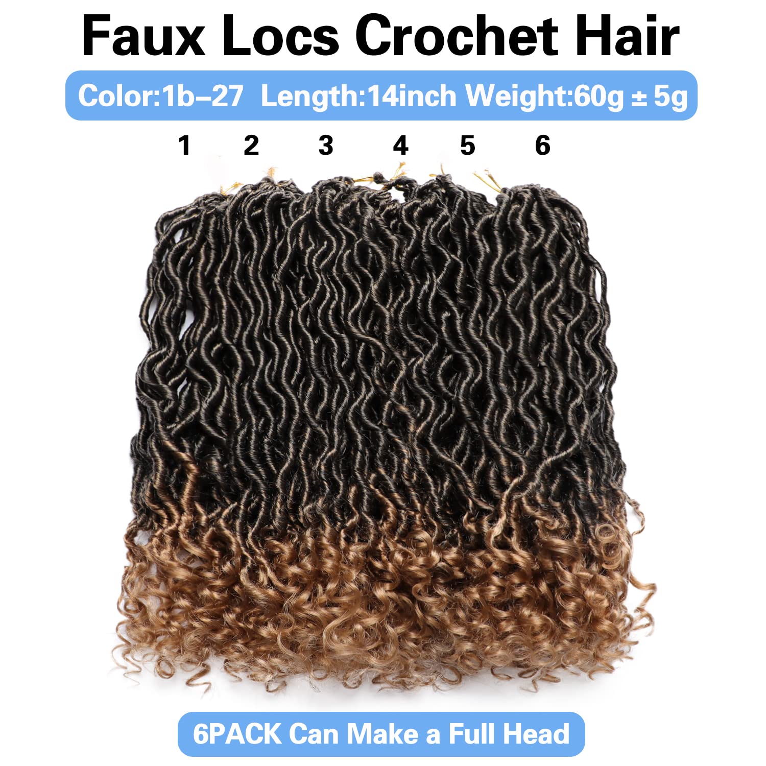 Goddess Locs Crochet Hair 6 Packs 14 Inch Wavy Curly Faux Locs Synthetic Braids Hair With Curly Ends for Black Women Extensions