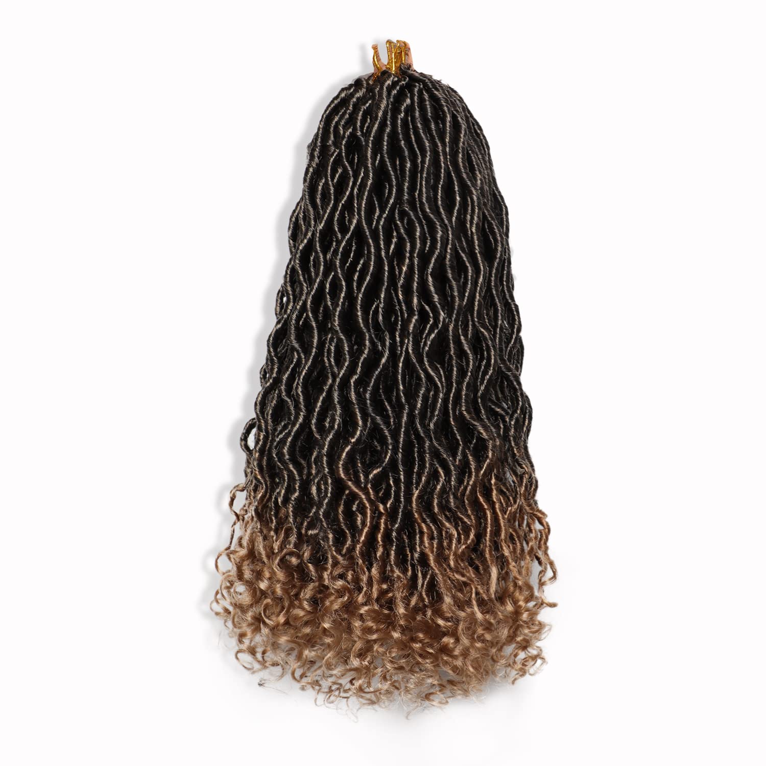 - 2.【Hair Material】100% Synthetic Hair, Top Quality Curly Faux Locs Crochet Hair makes you more charming. Soft Faux Locks Crochet Hair Made By Synthetic Fiber, Pre Looped Goddess Locs Crochet Hair With Beautiful Curly Ends, Looks Very Feminine, Just Like a Goddess.