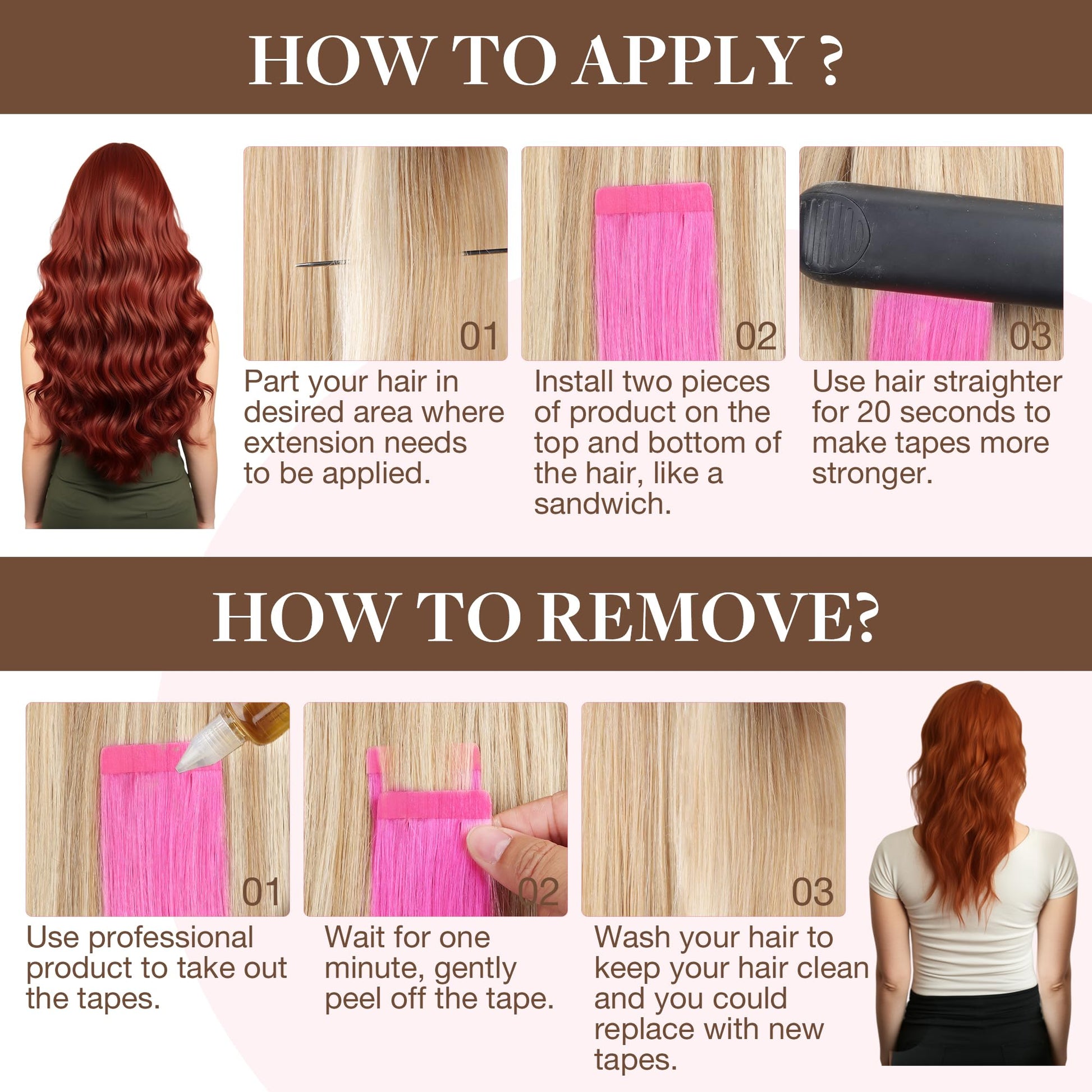 - Style It Your Way: GOO GOO tape-in extensions are your styling canvas. Curl, straighten, or style under 250°F. Avoid light clothing with color-toned extensions. They can be restyled easily but not recolored for best longevity. Express yourself confidently