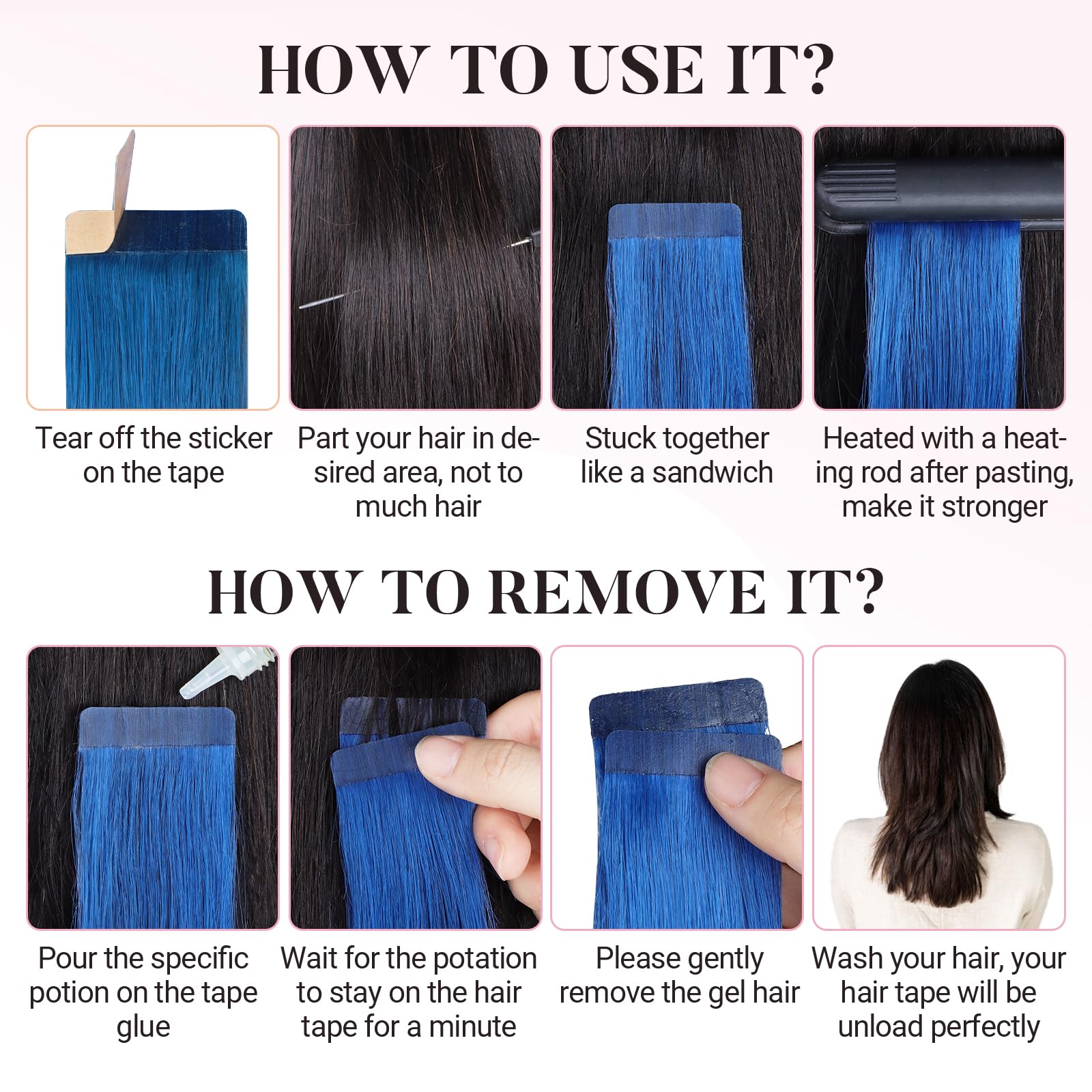 - Invisible Sticky Tape: Adhesive double-sided tape has been upgraded with the latest ultra-thin glue, can make your scalp and tape fit better. Hair tape will be more fixed after heating, can be removed with cleaning fluid, no harm to your scalp