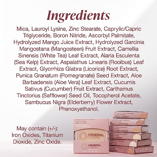 - PRESSED POWDER FOUNDATION: Preserve your naturally glowing complexion with the Mineral Fusion Powder Foundation. This makeup foundation is triple-milled for a smooth finish that airbrushes pores, ensuring that you stay shine-free and photo-ready