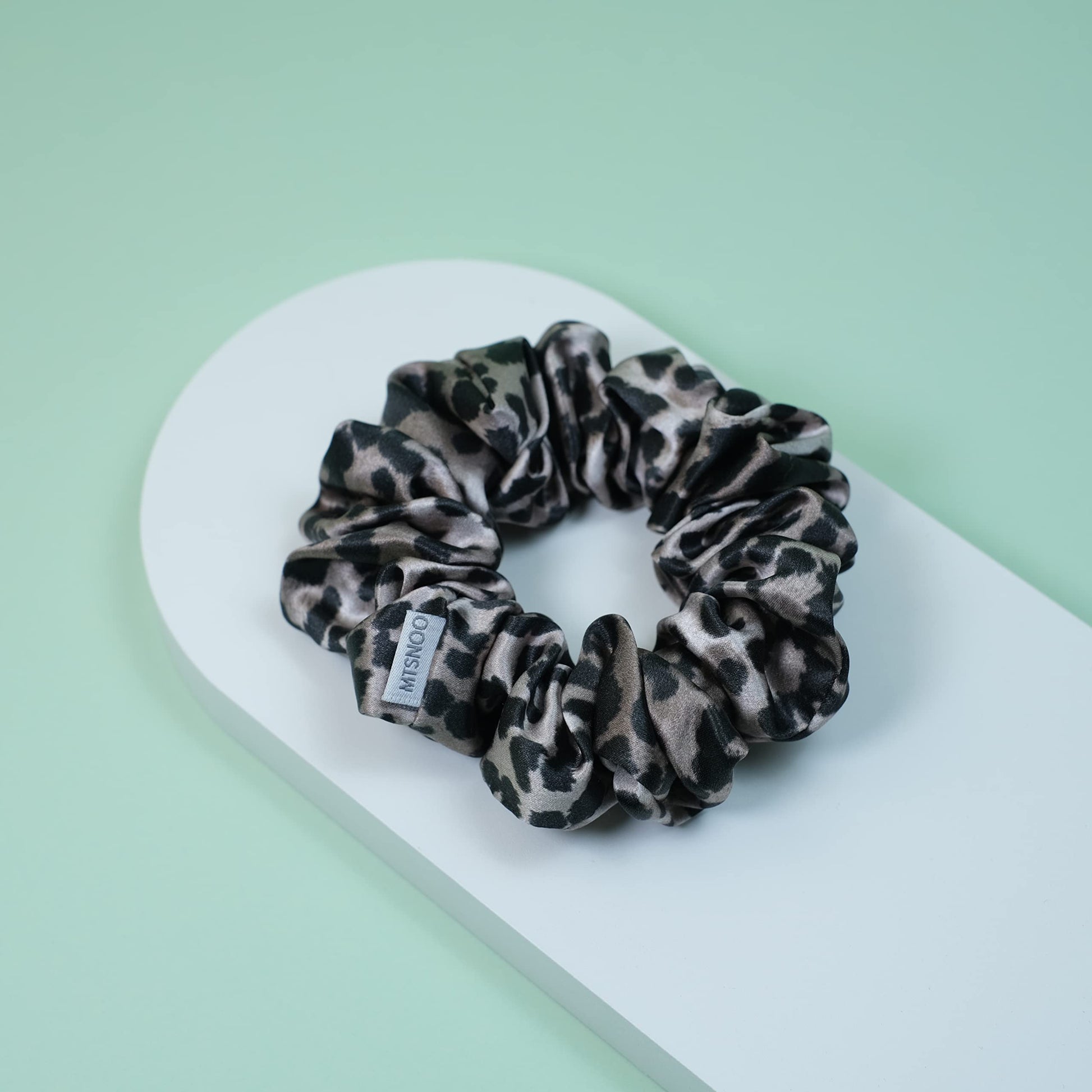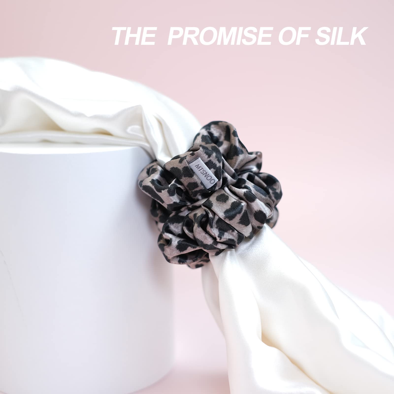 MTSNOO Silk Scrunchie for Hair Sleep, 100% Pure 22 Momme Mulberry Silk Scrunchies for Curly Hair with Elastic Band, 1 Pack, Black Leopard for Women & Girls