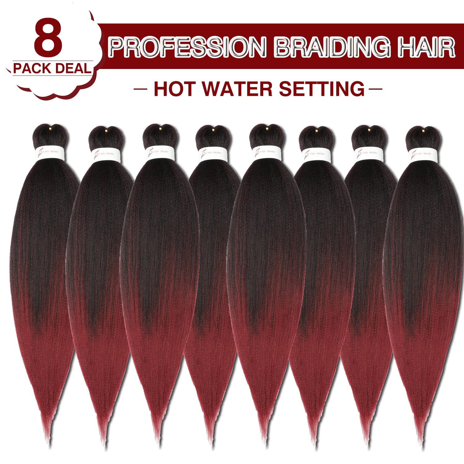 Pre-Stretched Braiding Hair Extension Ombre Black to Burgundy Professional Crochet Braiding Hair 26 Inch 8 Packs Hot Water Setting Perm Yaki Synthetic Hair For Twist Braids (26inch,#1B/Bug)