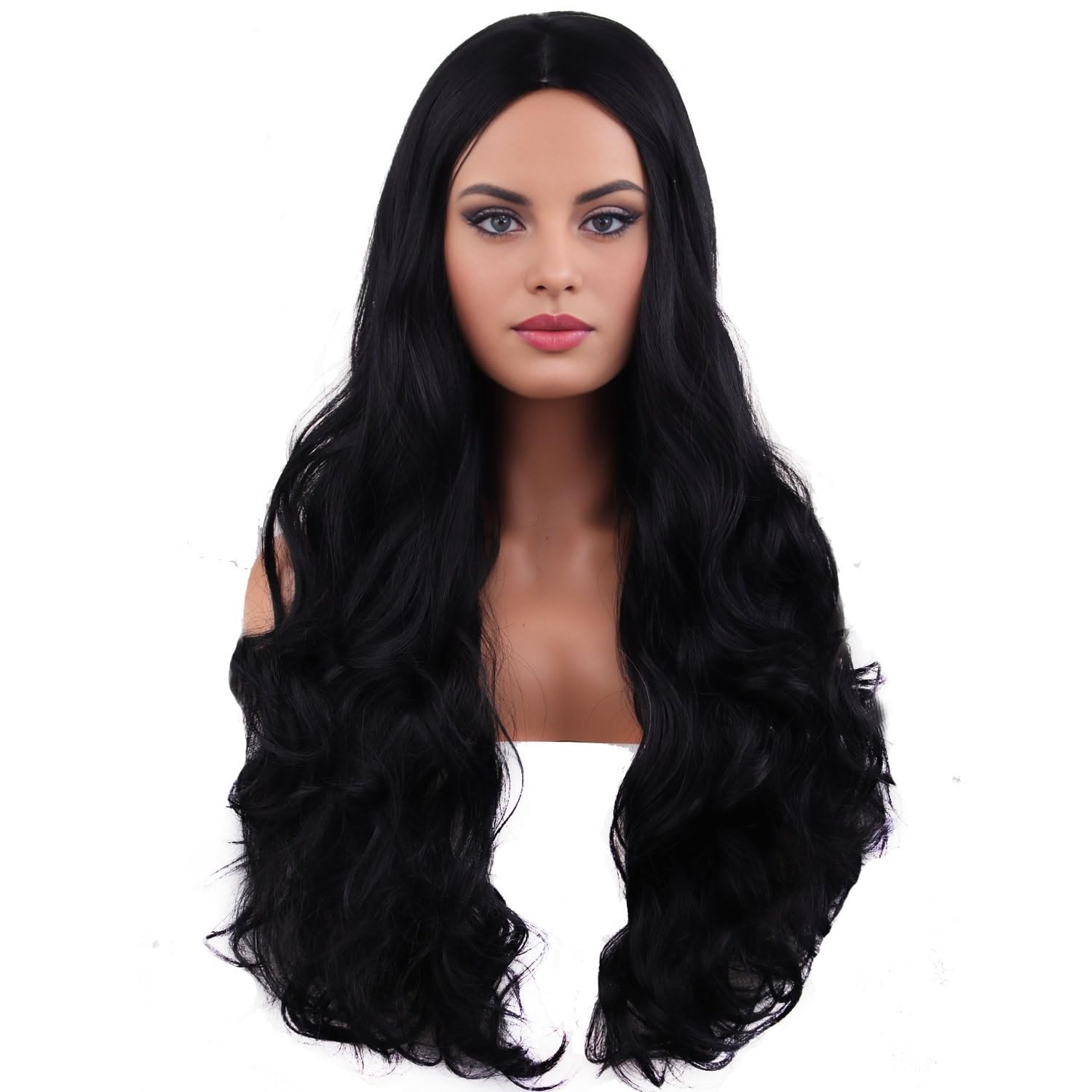 RightOn Black Wig Long Wavy Black Wigs for Women Daily Party Hairnet Include