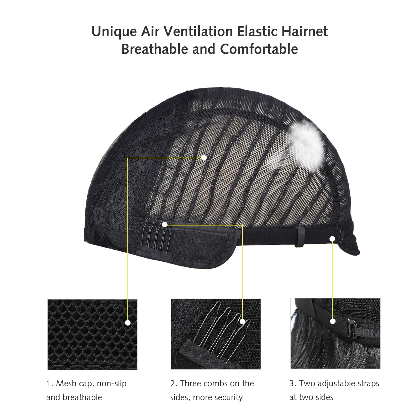 - Adjustable Wig Cap Design: Our lightweight curly bob wigs feature a breathable rose-net cap and front combs for a secure fit. Adjustable straps on each side ensure a comfortable fit for different head sizes.