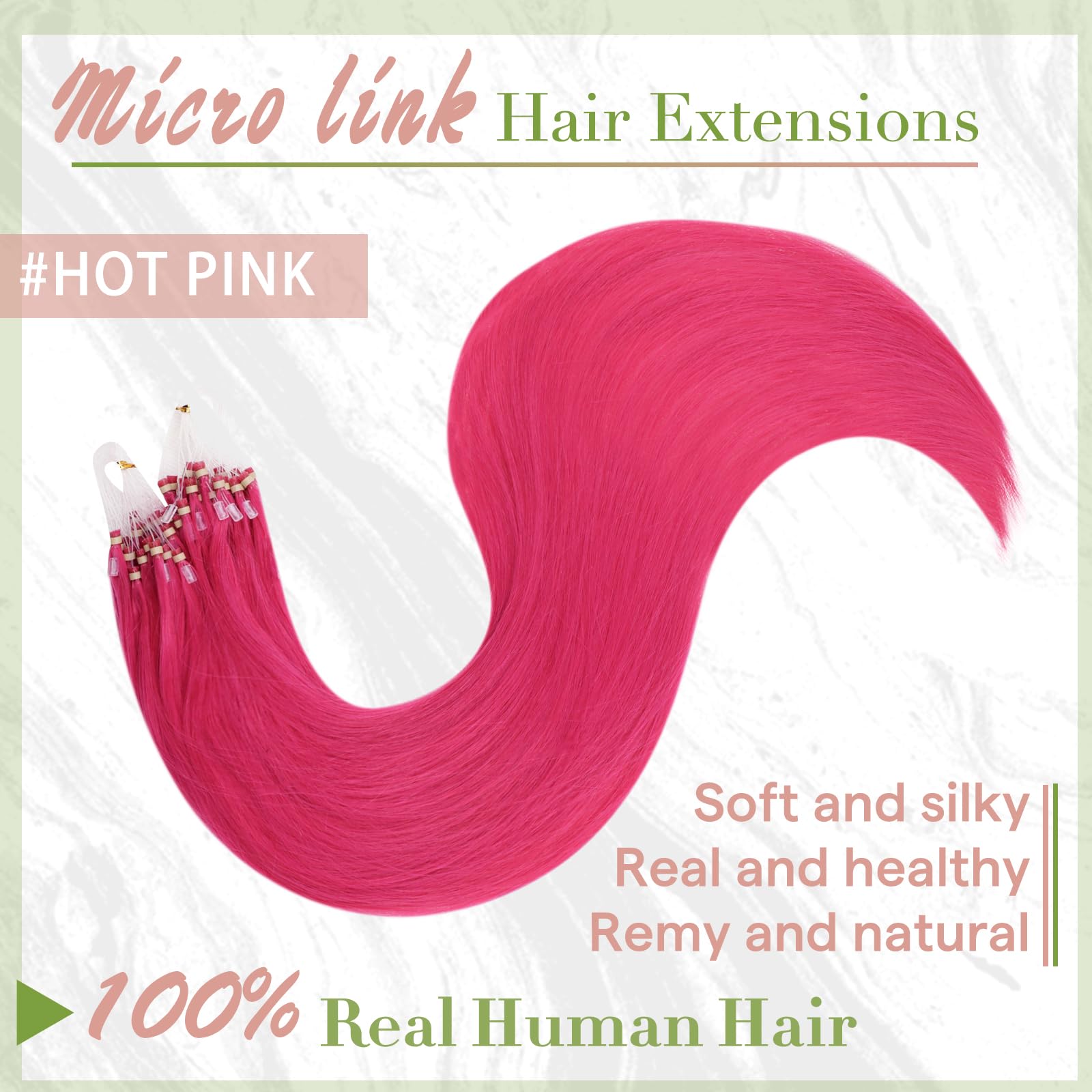 RUNATURE Micro Link Hair Extensions 16 Inch Straight Hot Pink Human Hair 25g 25s