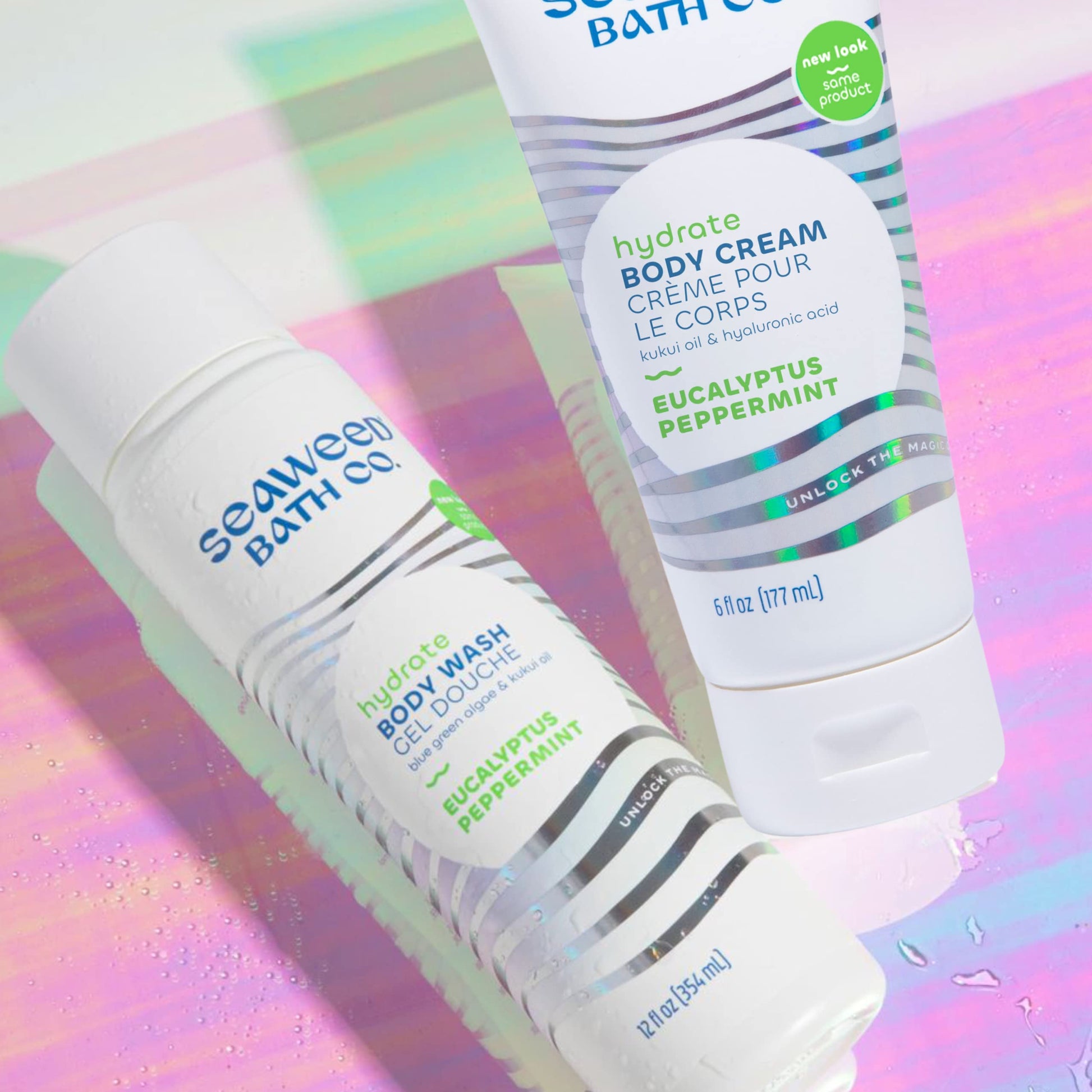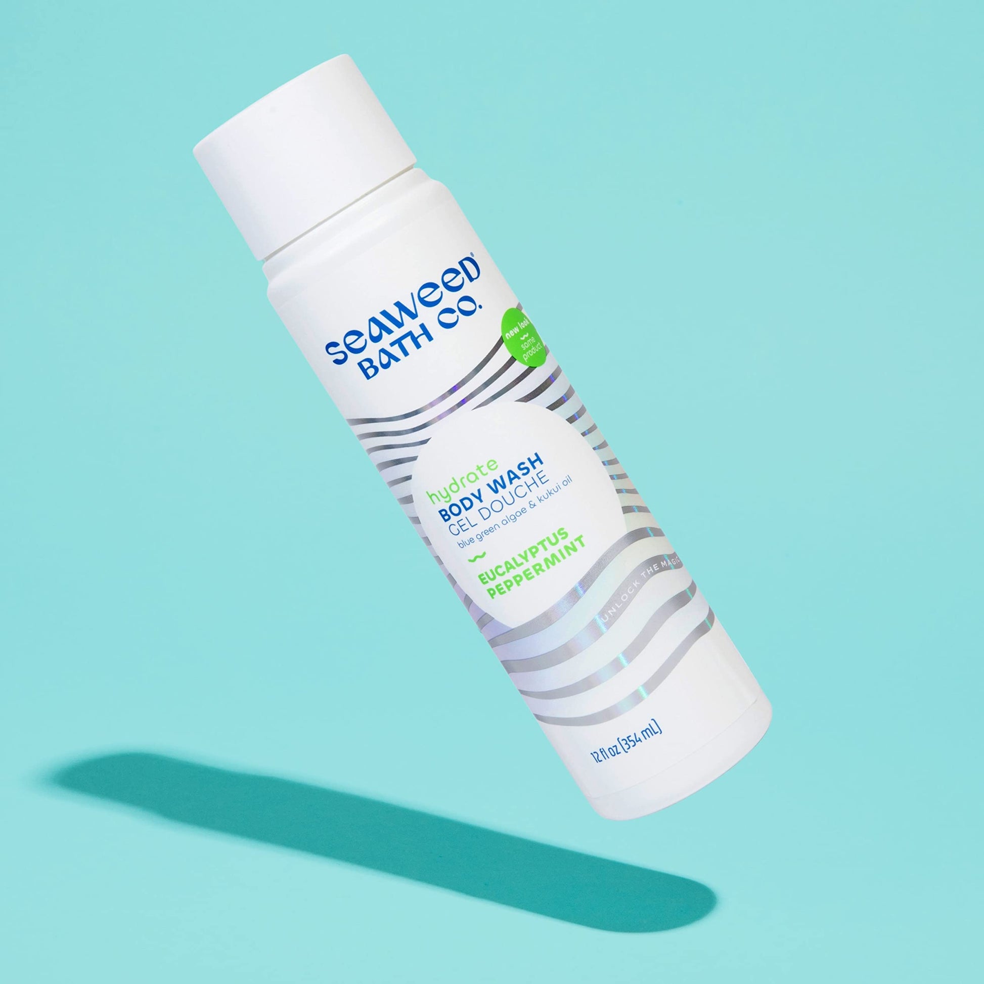 Seaweed Bath Co. Body Wash and Body Cream Duo, 12 Ounce, 6 Ounce, Eucalyptus Peppermint Scent, Sustainably Harvested Seaweed