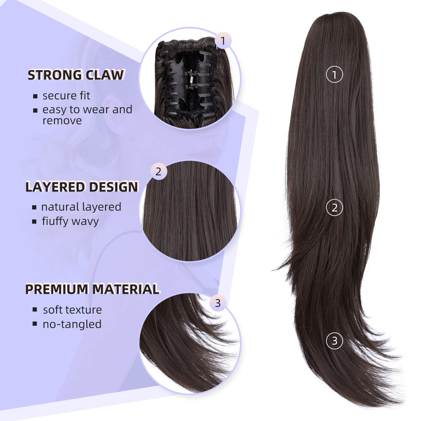 - Quick Hairstyle in 10 Seconds: Clip-In design gives you the full and luscious looks in less than 33 seconds.Time Saver! Great for medium to thin hair, and women with short hair can also make their hair longer. Ponytails can create a variety of different hairstyles that can be changed according to your dressing.