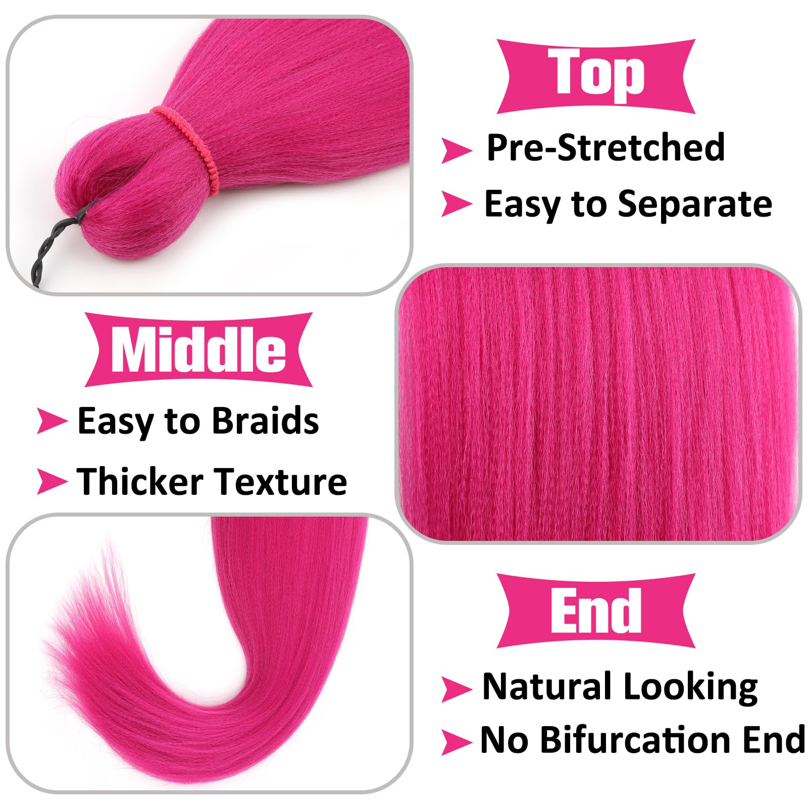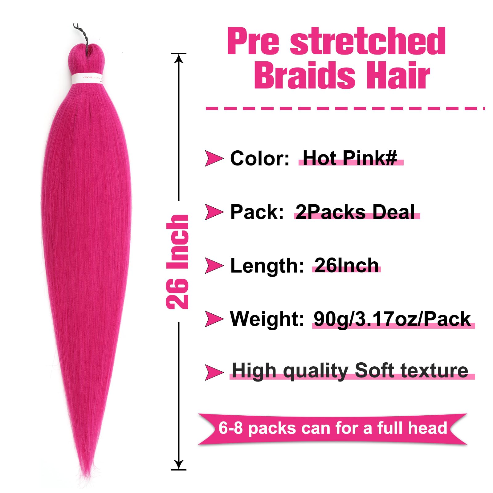 Unionbeauty Hot Pink Pre Stretched Braiding Hair 26 Inch 2 Packs Dark Pink Braiding Hair for Box Braids Yaki Texture Hot Water Setting Crochet Braid Hair Extensions Synthetic Braiding Hair(Hot Pink#)