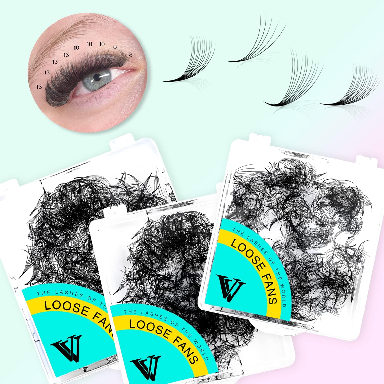 - Cost-effective,vavalash premade loose fans come in packages of 500 fans per box,equivalent to 4-5 boxes of 12 rows of premade fans.Obviously,Loose Fans is more cost-effective