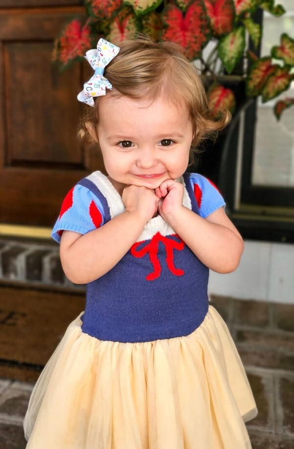 Wee Ones Girls School-themed Printed Grosgrain Hair Bow on a WeeStay Clip with Plain Wrap, Mini, ABC'S White
