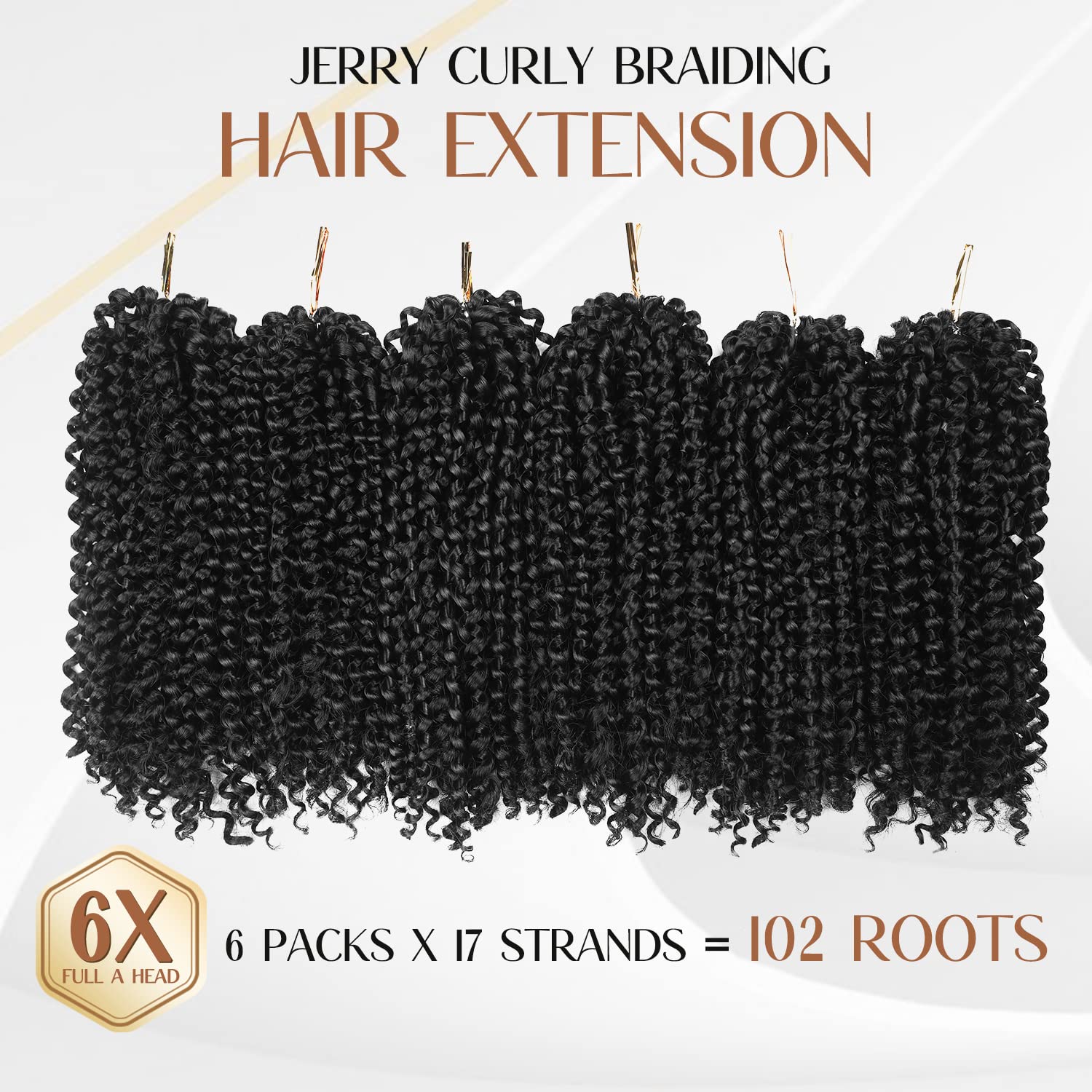 WIGER Kinky Curly Crochet Hair Marlybob Braiding Hair Black Jerry Curly Passion Twist Hair Curly Crochet Braids Medium Length Synthetic Kinky Twist Hair Extensions (6 Packs,10 Inches)