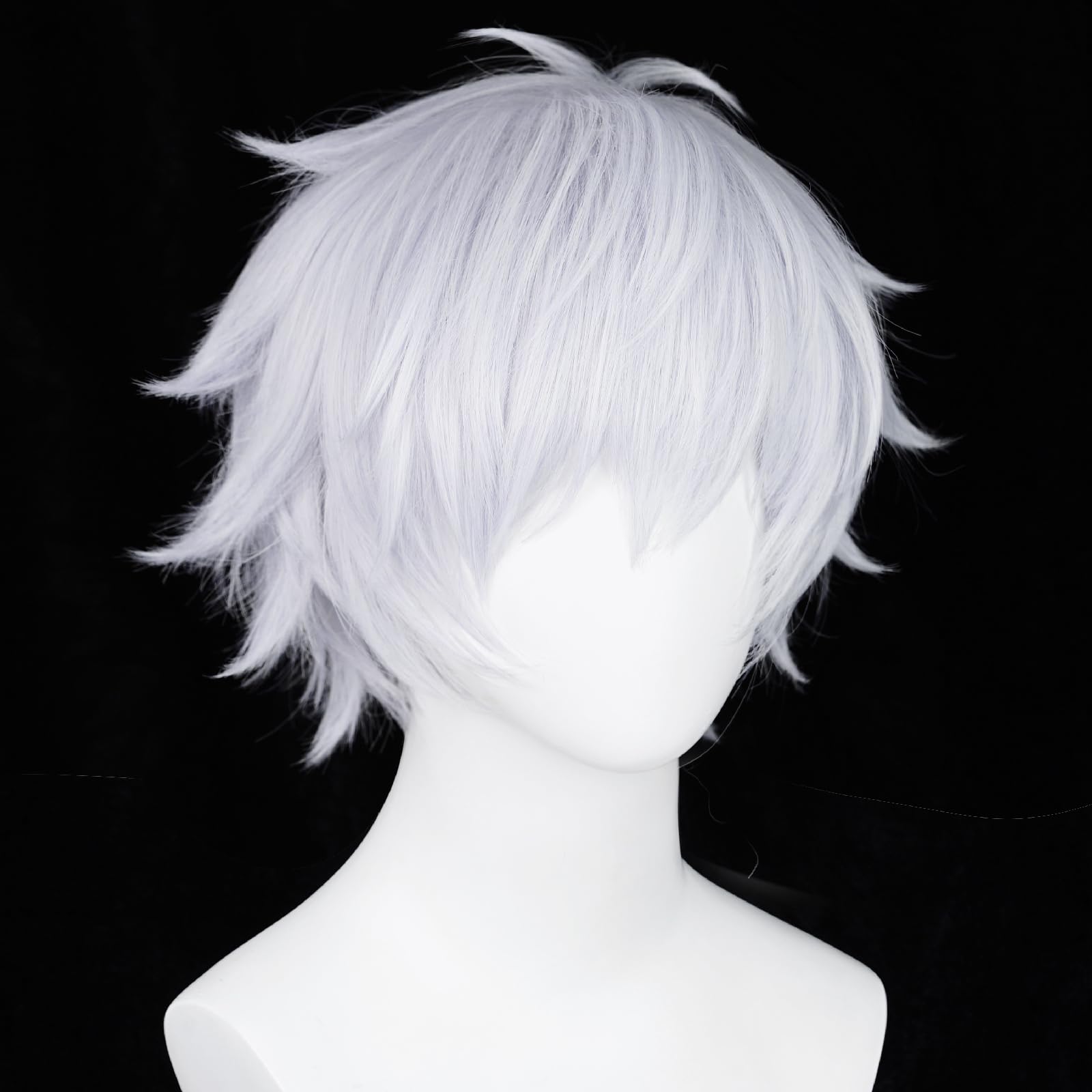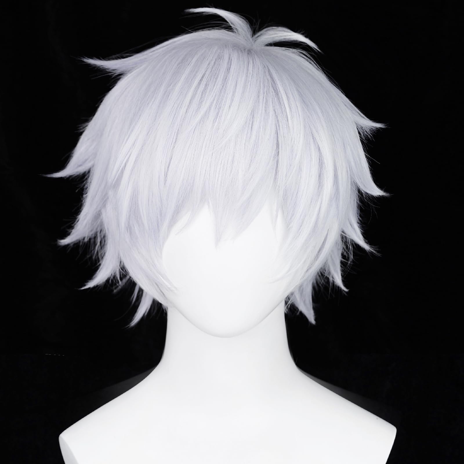 Wiggy Mermaid Silver Violet Wig for Satoru Gojo Cosplay, Mens Short Fluffy Spiky Hair Wig for Anime Cosplay Halloween Costume