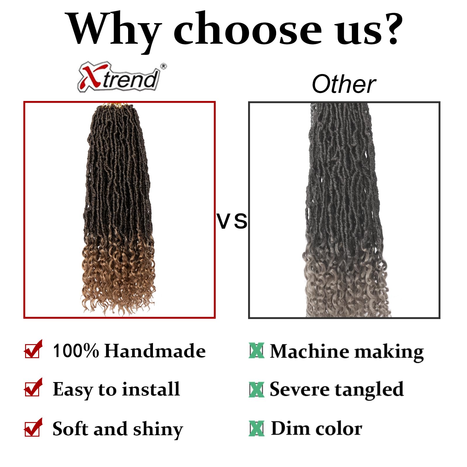 Xtrend 18 Inch New Faux Locs Crochet Braids With Curly Ends 7 Packs Soft Goddess Faux Locs Crochet Hair Natural Pre-looped Synthetic Crochet Braiding Hair for Women (12Strands/pack T27#)
