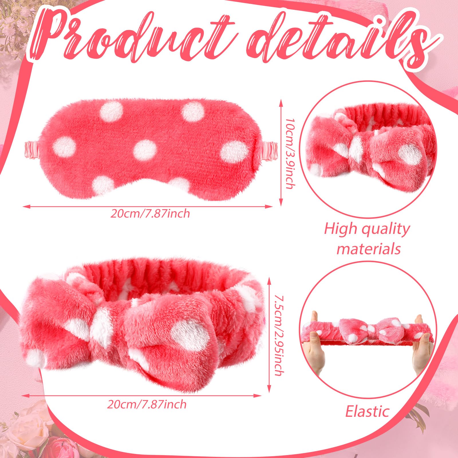 - Bright Colors: our spa headbands and eye masks are designed in pink series dots and stripes, which look cute and elegant, easy to attract others' attention and make you stand out on the party